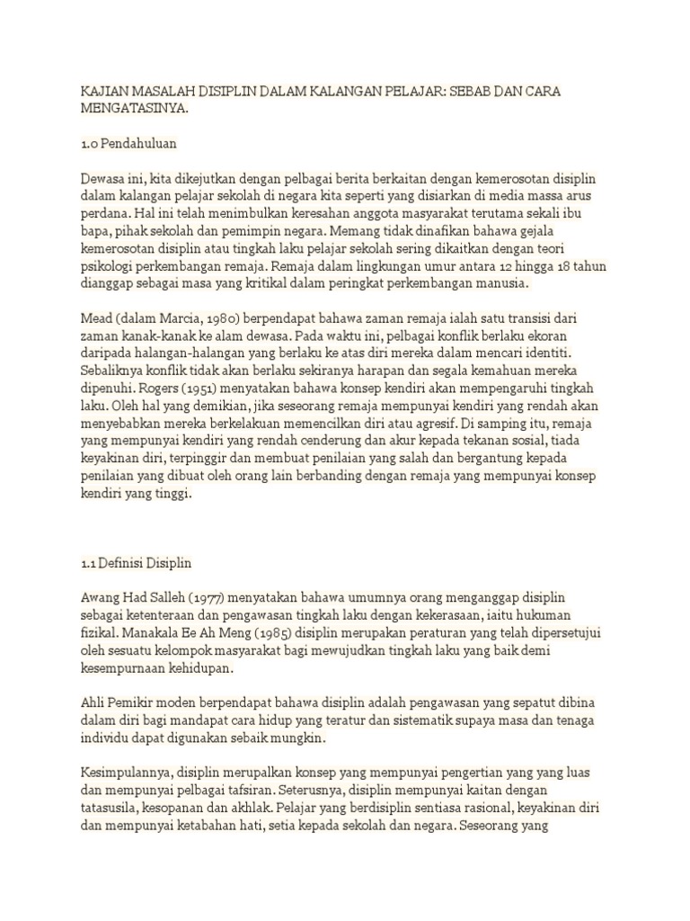 Kajian Masalah Disiplin Dalam Kalangan Pelajar Pdf