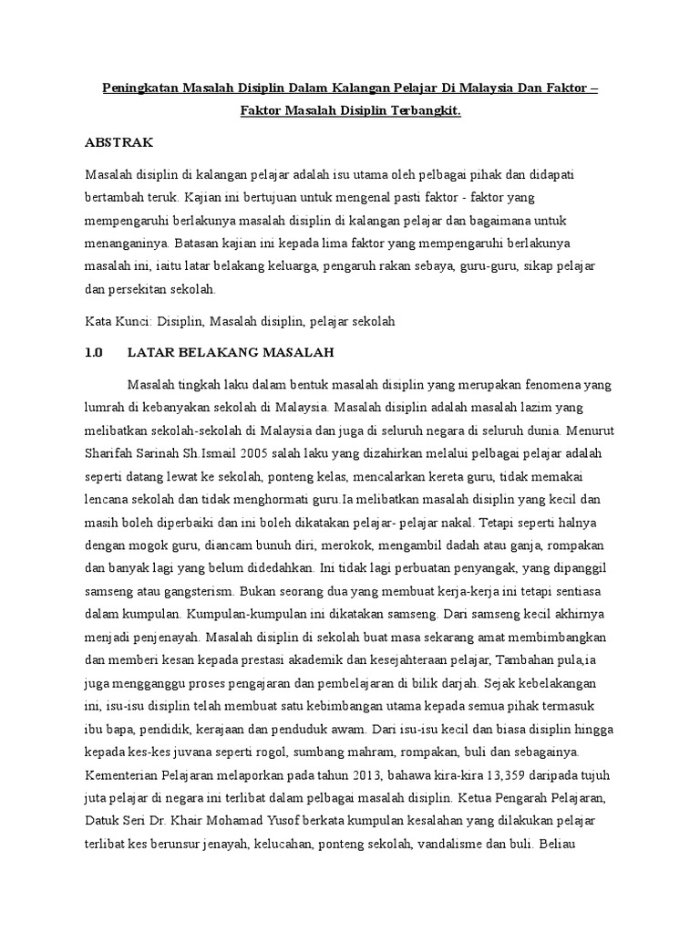 Masalah Disiplin Dalam Kalangan Pelajar Pdf